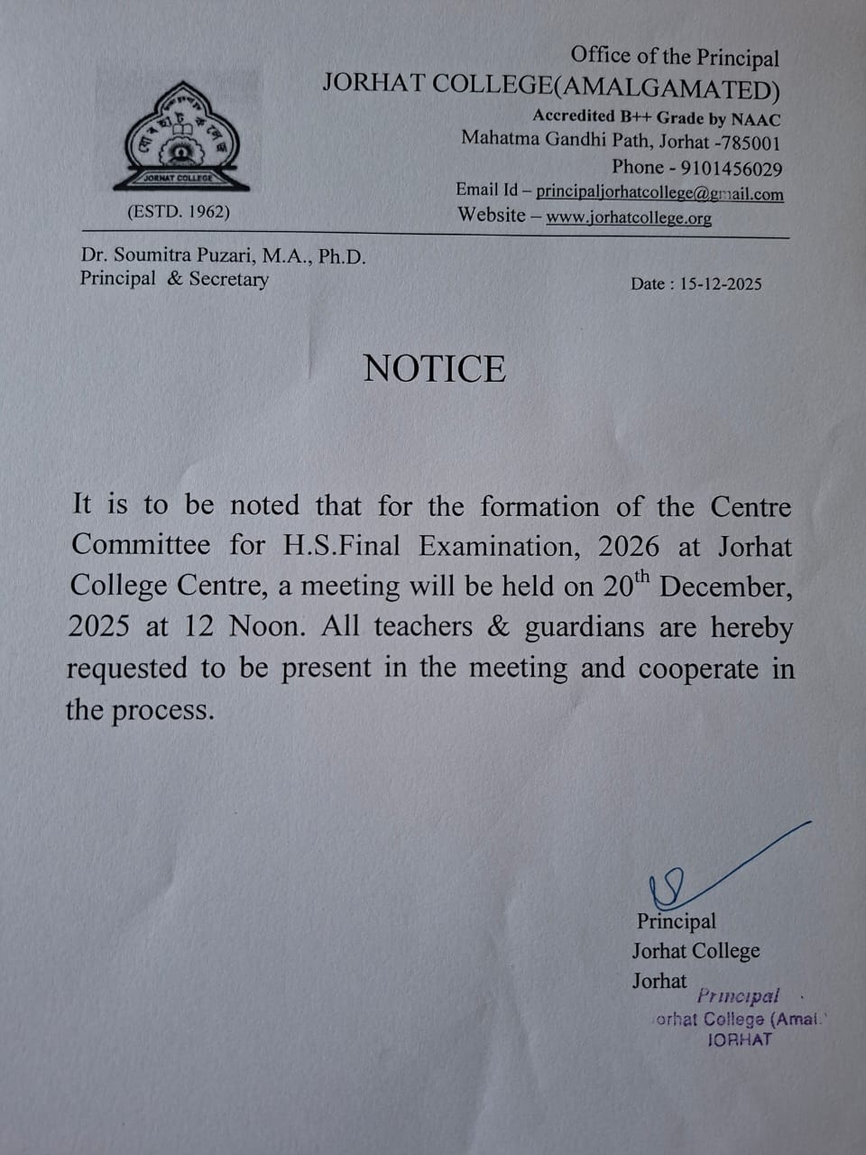 ICSSR-NERC Sponsored National Seminar at Jorhat College  - Click Here
