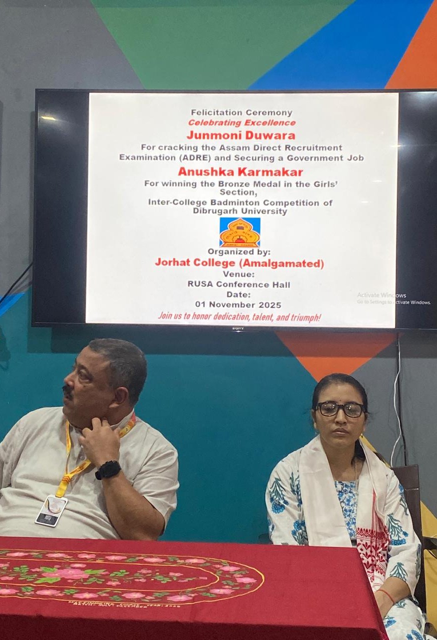 Jorhat college felicitated Junmoni duwara for clearing Assam state level Reqruitment exam successfully.