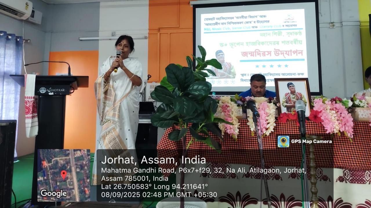 Jorhat College's Assamese department, in collaboration with NSS, Music Club, and Literary Club, celebrated Dr. Bhupen Hazarika's birth centenary on September 8, 2025. The event featured song and dance performances, as well as a keynote speech by Nibedita Sangkakati, a retired professor from DCB College.